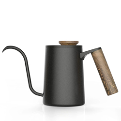 Hervidor de café de acero inoxidable ecológico 2023, Espresso de 350ml con mango de madera, cafetera de cuello de cisne de cocina personalizada